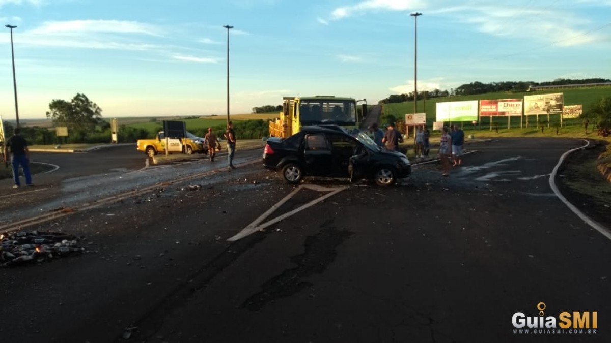 De acordo com as primeiras informações, uma colisão envolvendo um Ford Fiesta e um caminhão M. Benz/1215C, carregado de bebidas foi registrado próximo ao trevo de acesso à Itaipulândia.