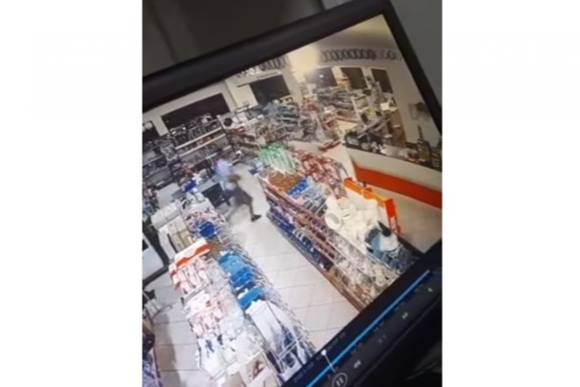 O suspeito entrou sozinho e correu em direção ao balcão de atendimento. Ele abriu algumas gavetas e levou um aparelho de celular. No lado de fora estavam outros suspeitos com um carro que, possivelmente, ajudaram na fuga.
