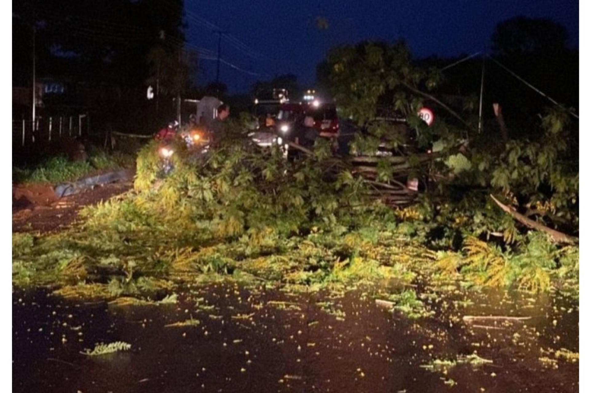 Na noite desta quarta-feira (22), por volta das 19h30, um temporal derrubou diversas árvores na rodovia PR-497, no trecho que liga os municípios de São Miguel do Iguaçu e Missal, bloqueando por completo o fluxo de veículos.
