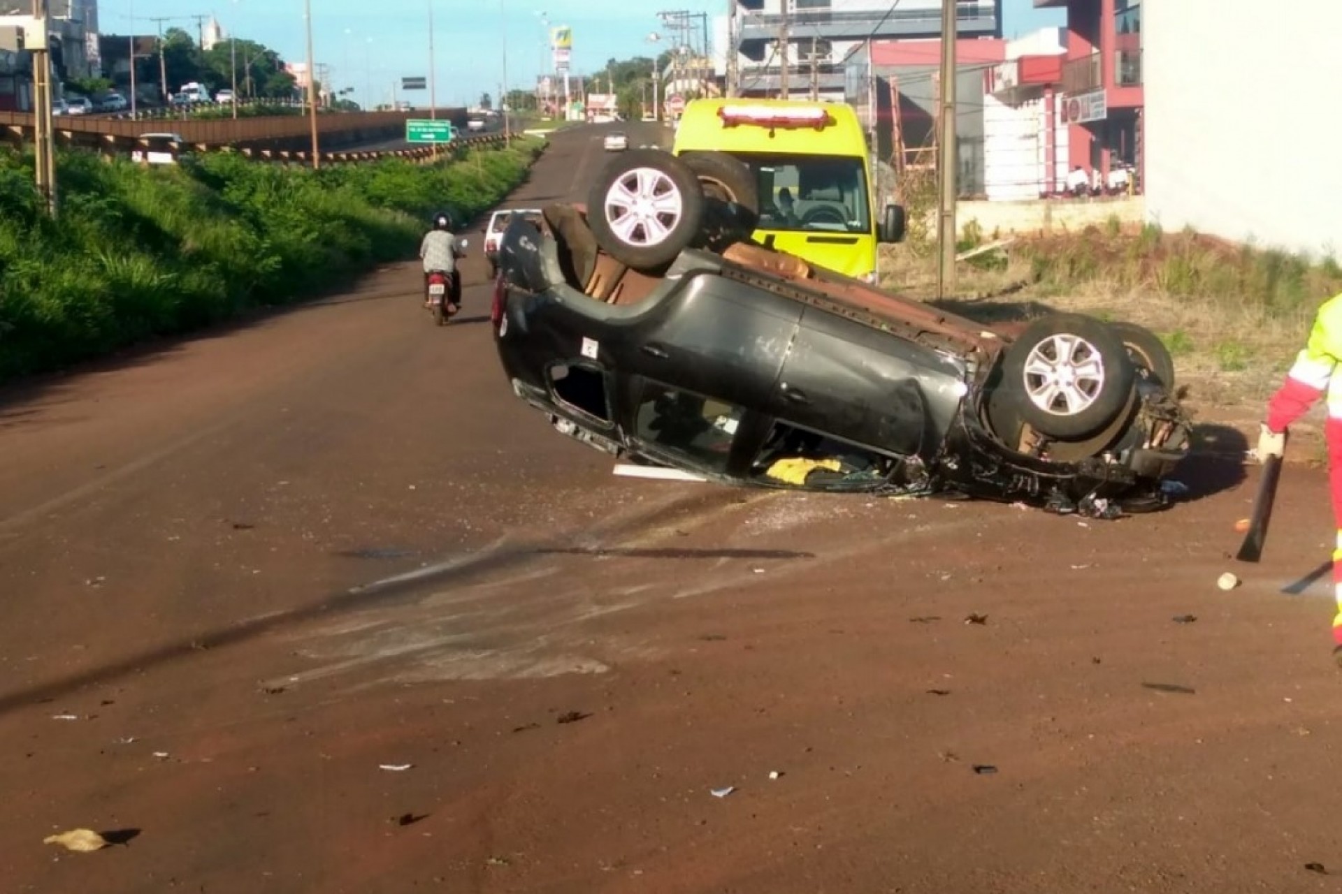 Um veículo Duster que trafegava pela rodovia BR 277, sentido Cascavel à Medianeira, acabou capotando após sair da pista no perímetro urbano de Medianeira.