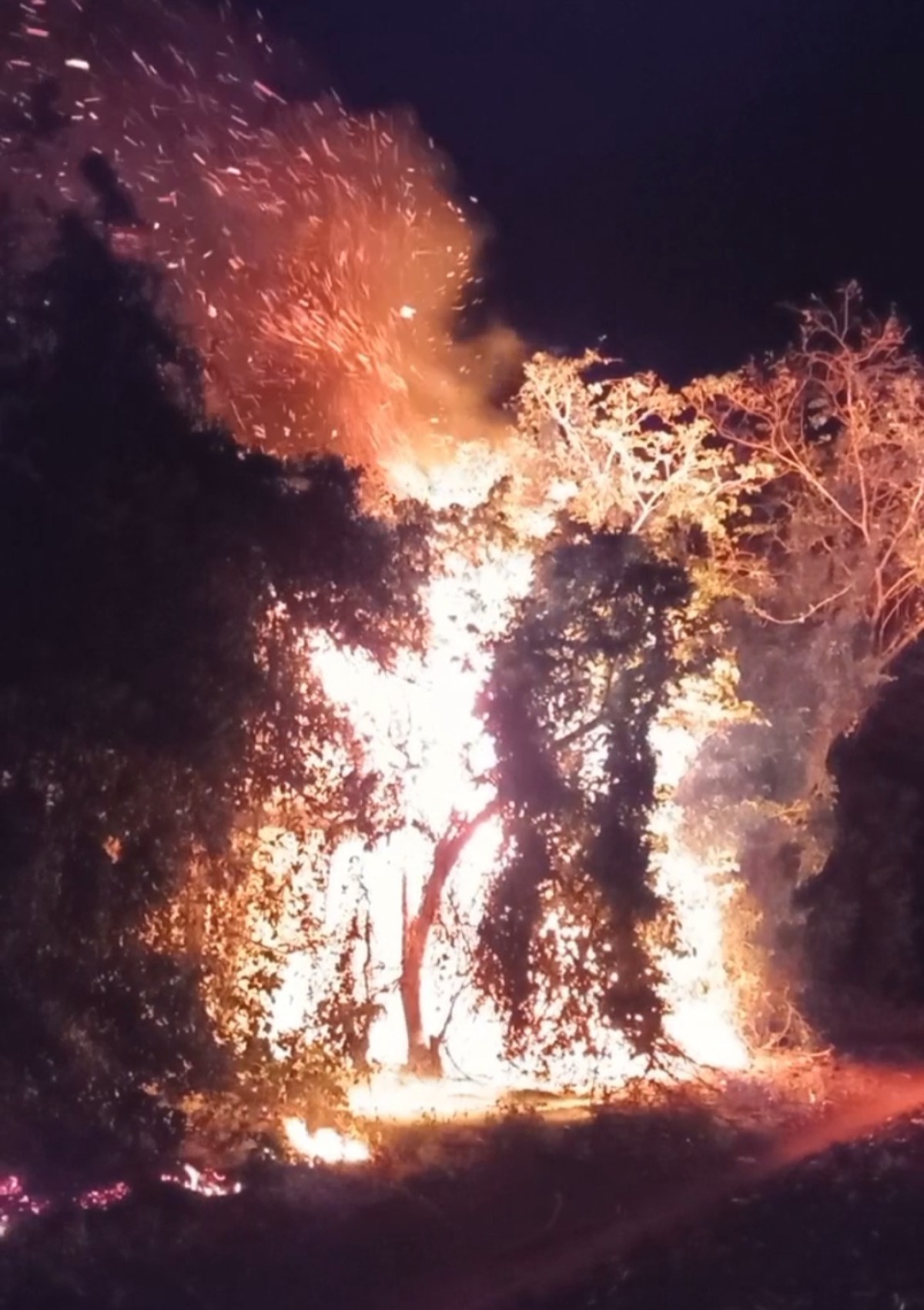 Defesa Civil de Missal combate incêndio no bairro Panorâmico, na noite de hoje (10).