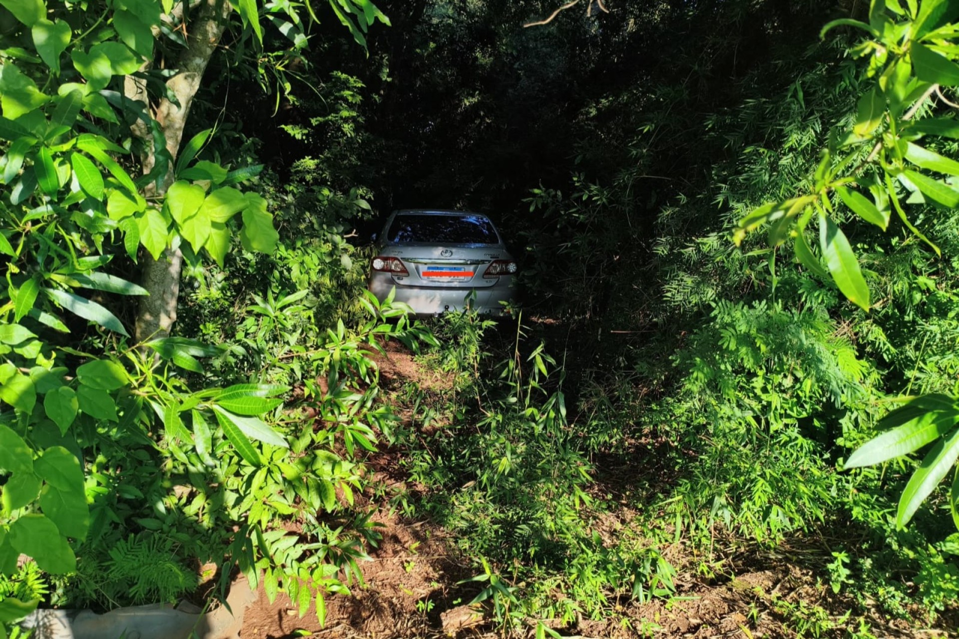 Na manhã desta terça feira dia 4, com informações anônimas recebidas, foi possível localizar em um área de mata da Comunidade de linha São João em Missal, o veículo Corolla em estado de abandono.