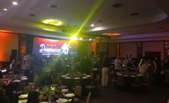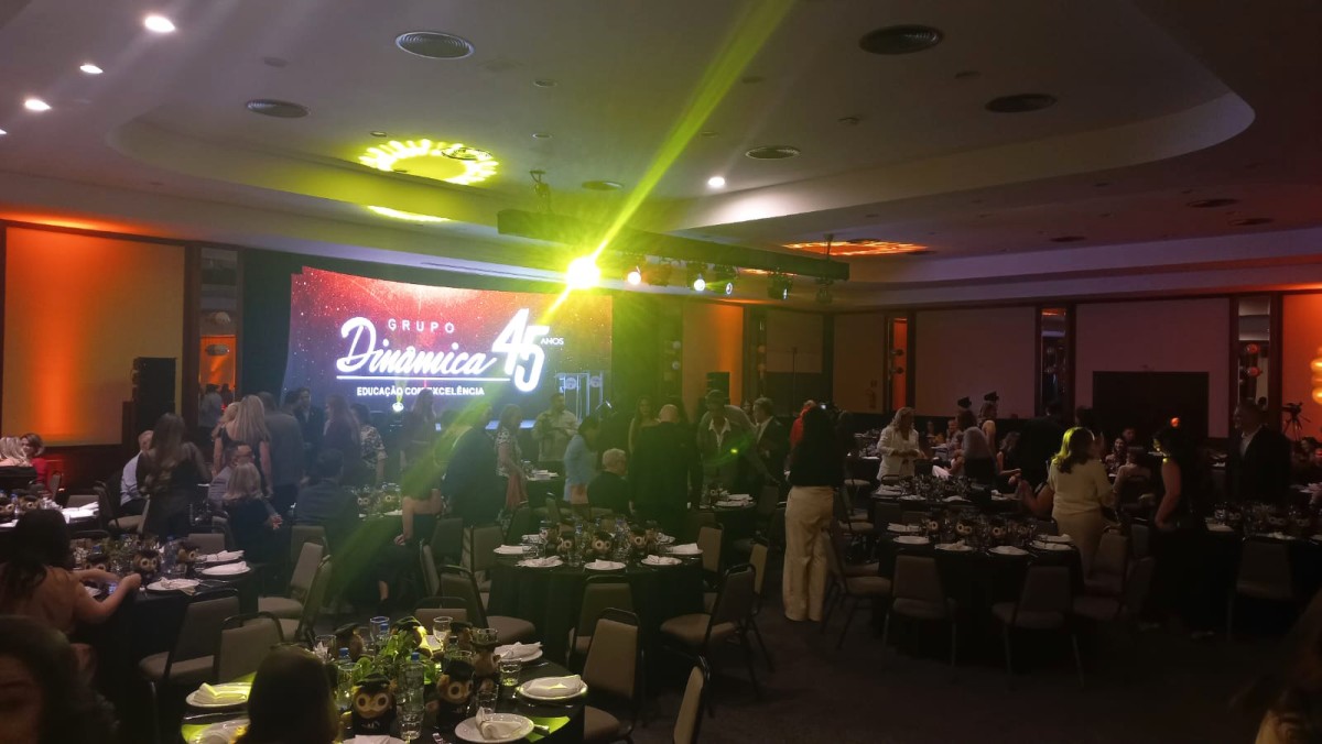 A festa dos 45 anos da Dinâmica, em um dos salões de convenções do Hotel Bourbon, contou com dezenas de homenagens aos professores e coordenadores das instituições.
