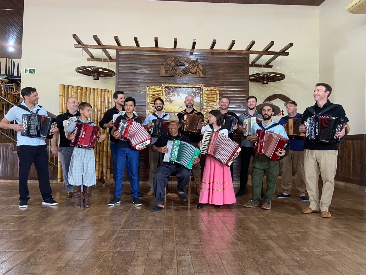 “Mas hoje estamos aqui apenas para lembrar do mestre. Estamos aqui para agradecer ao ser humano, ao amigo, ao companheiro de estrada. E este presente, esta gaita, simboliza nossa admiração e respeito”, finaliza Mazzola.