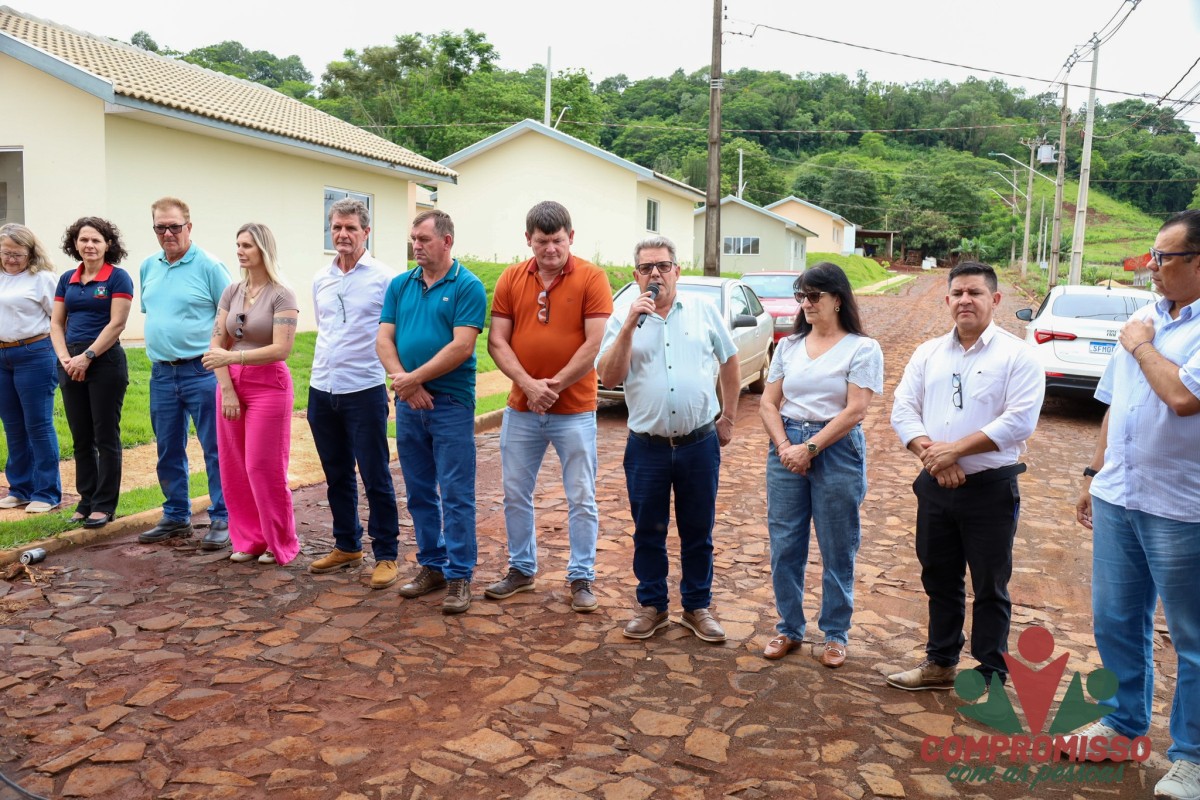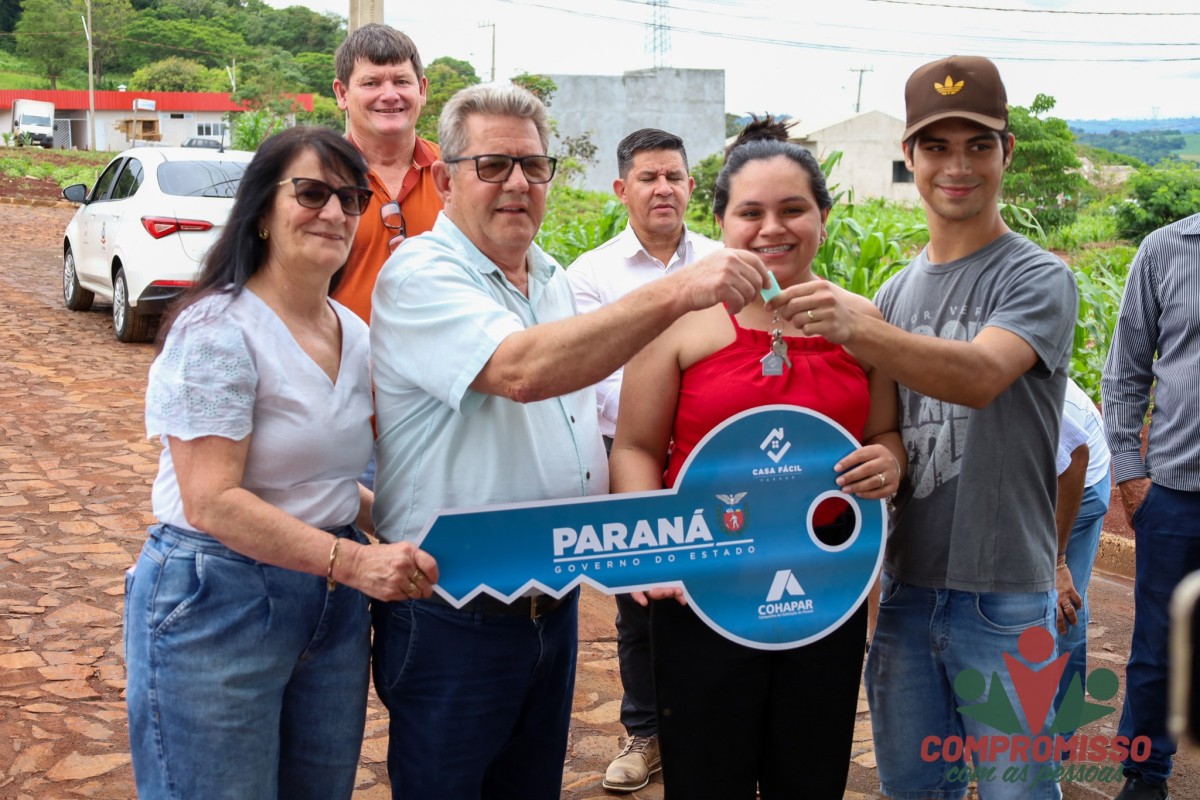 O Coordenador Regional da Cohapar, Gerson Paranhos esteve na entrega das chaves. Ele falou em nome do Presidente da Cohapar, Jorge Lange e do Governador Ratinho Jr. Falou da importância da parceria entre município e Estado do Paraná e o papel fundamental dos gestores para efetivação do Conjunto Habitacional.