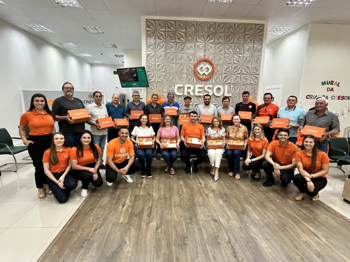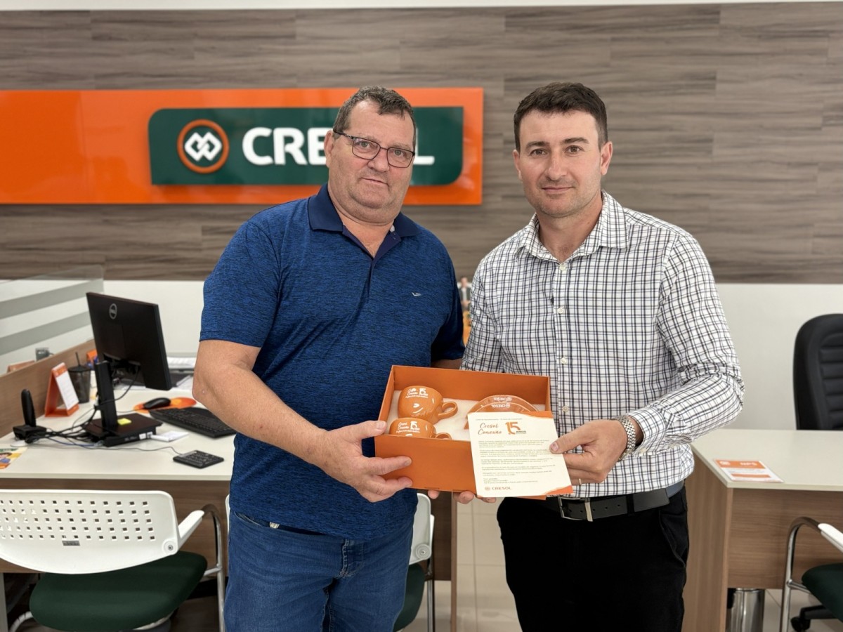 “A gente vê que a Cresol hoje ajuda muito as pessoas. Se você precisa de algo, eles dão um jeito e nunca te deixam na mão. E torcemos para que continue assim: acolhendo e ajudando muitas pessoas”, afirmou Pedricia Ludwig, de Missal (PR). Cada cooperado recebeu um jogo de xícaras de café na cor laranja para expressar a gratidão e reconhecimento da Cresol Conexão.