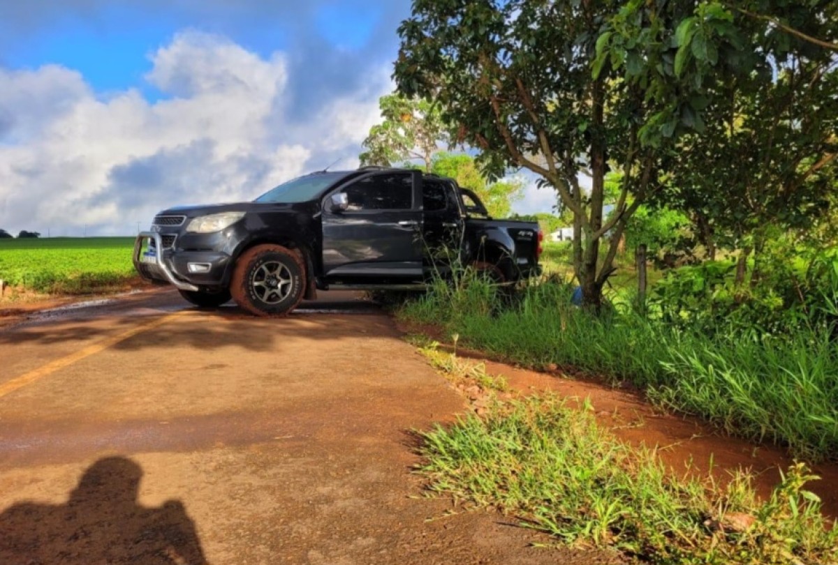 A vítima, foi localizada caída ao lado de uma caminhonete S-10 de cor escura, próxima a uma estrada.