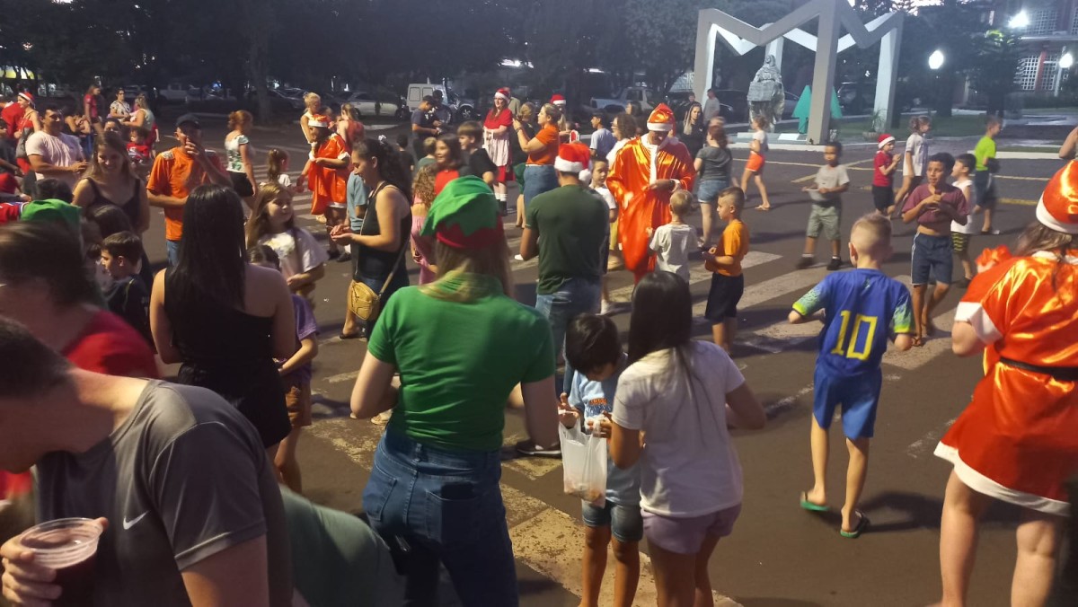 A Invasão dos Papais Noéis, organizada pela Acimi, inicialmente prevista para o dia 14 de dezembro, ocorreu na última sexta-feira, 19 de dezembro e reuniu um grande público na Praça Central Eugênio Schneiders de Missal. O evento foi transferido por questões climáticas.