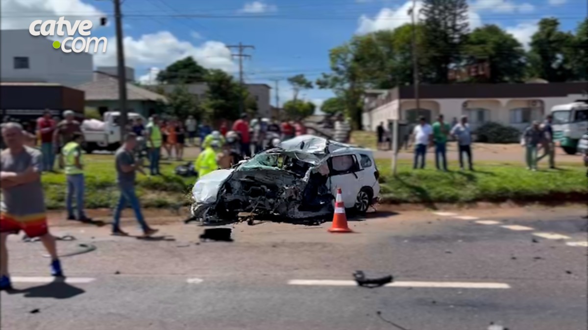 Motorista de carro morreu e três vítimas ficaram feridas em acidente no km 608 da BR-277, em Santa Tereza do Oeste, na manhã desta sexta-feira (16).