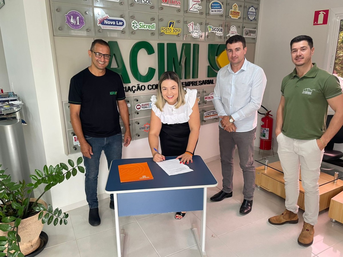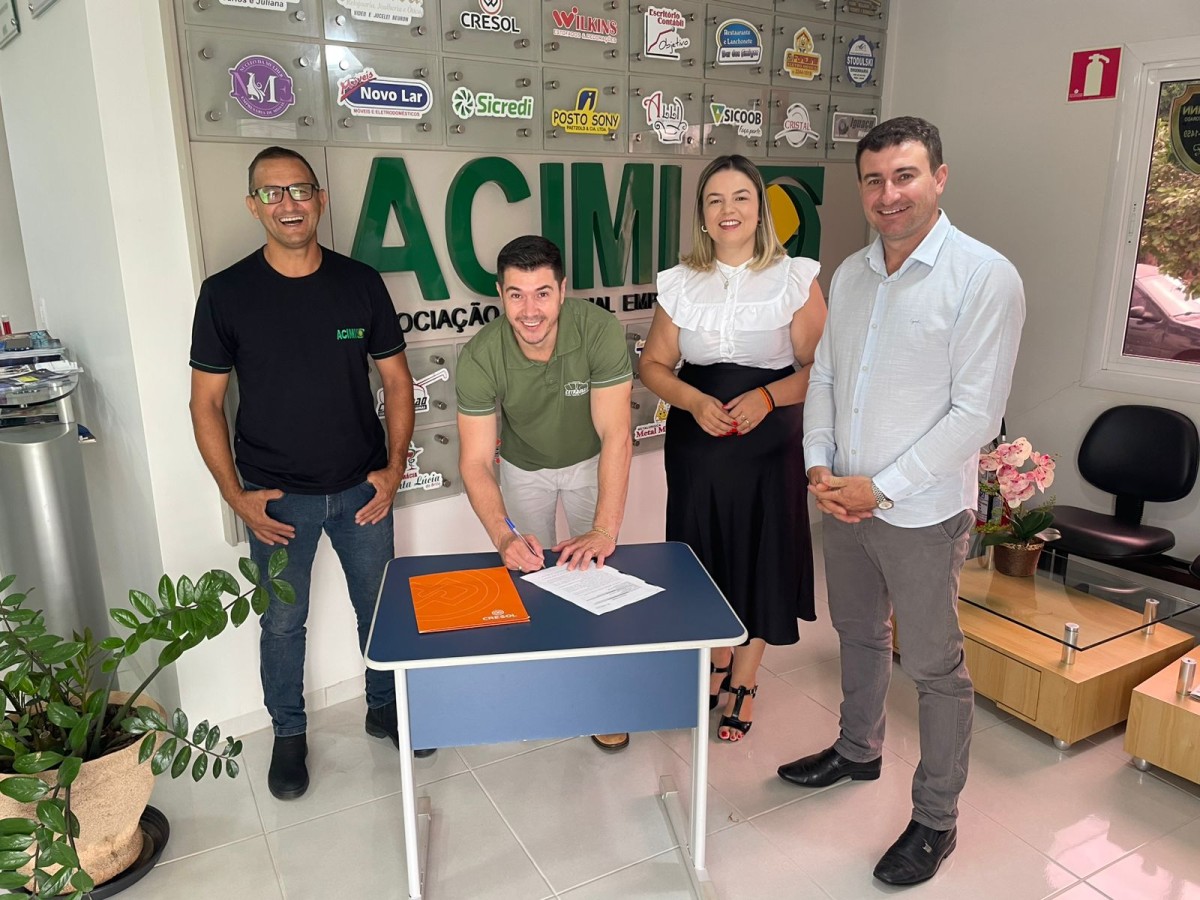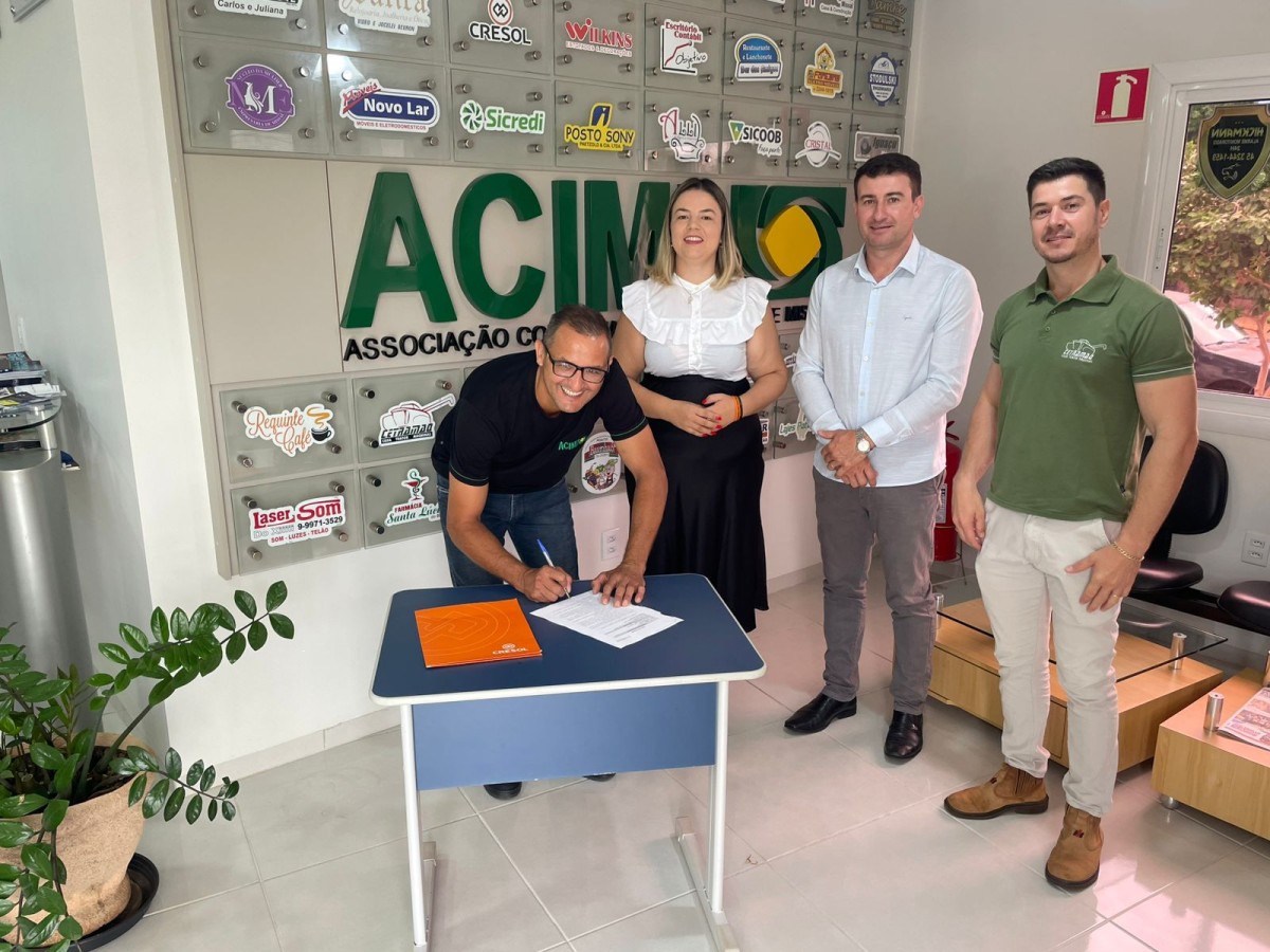A parceria entre a Acimi e a Cresol foi oficializada na manhã de ontem, dia 19 de março, na sede da Acimi, e contou com a presença do presidente da Acimi, Marcos Panzenhagen, do Presidente da Cresol Conexão, Adenilson Zanelatto, juntamente com a gerente da Agência Cresol de Missal, Talita de Oliveira, o vice-presidente da Acimi Willian Leal, a secretária executiva da ACIMI Adriana Lunkes e diretores da associação.