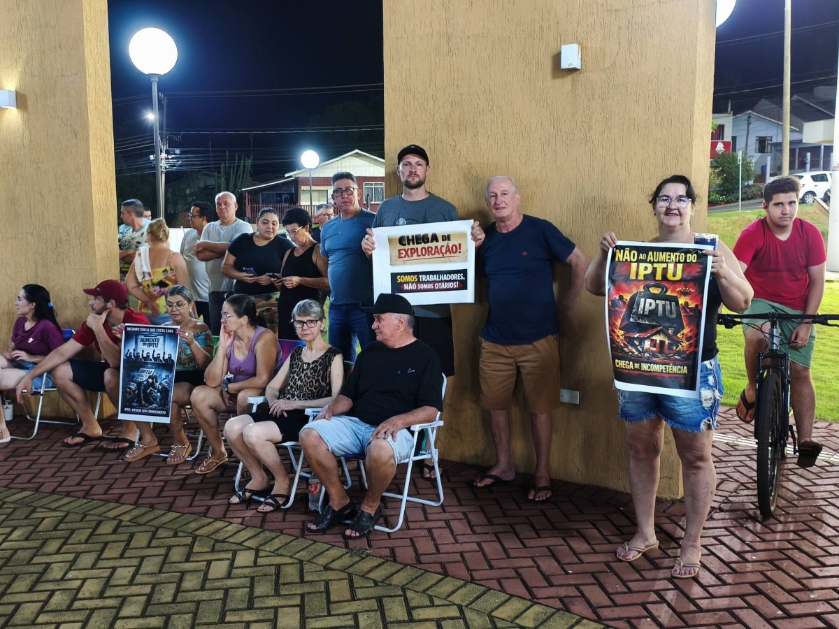 Moradores de Medianeira realizaram manifestação na noite deste domingo (29), em frente à Prefeitura. O ato foi convocado pelas redes sociais e reuniu pessoas contra o aumento do IPTU 2026.