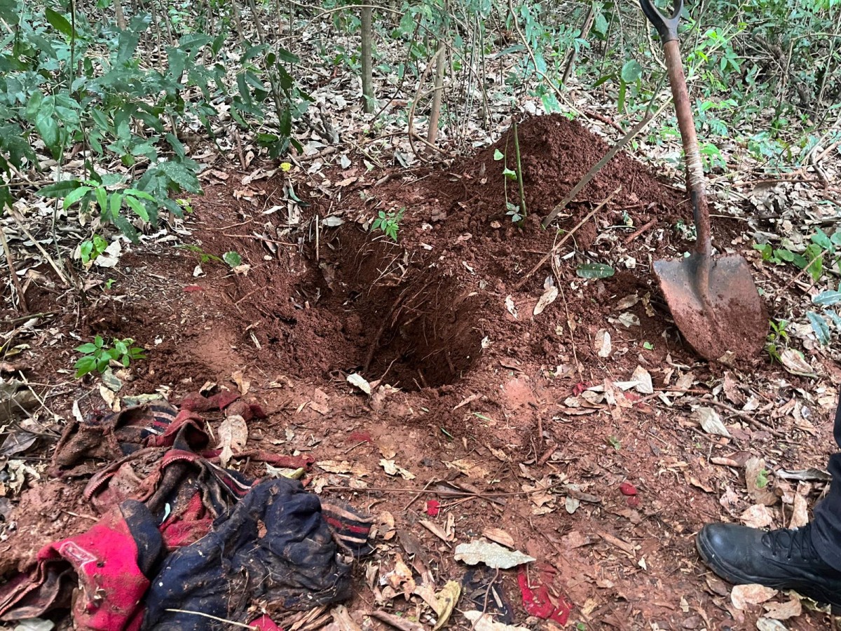 De acordo com o perito responsável, há indícios de que um animal possa ter desenterrado parte dos restos mortais, já que diversos ossos foram encontrados espalhados pela área, enquanto outros ainda permaneciam enterrados em uma cova próxima, situação considerada incomum.