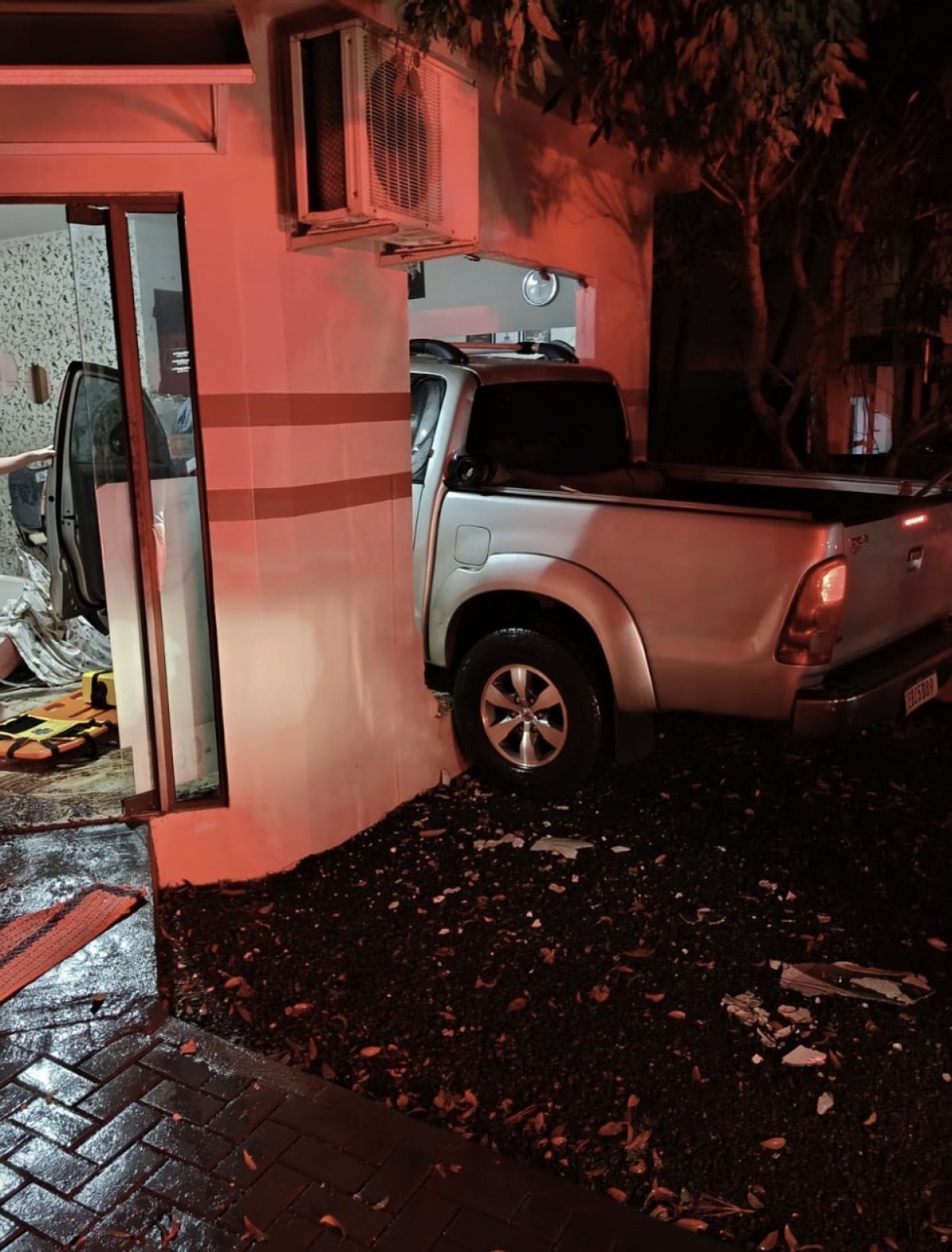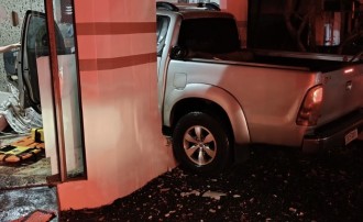 Motorista de uma Toyota Hilux perdeu o controle do veículo e atingiu estabelecimento por volta das 2h30 desta quarta-feira (29)