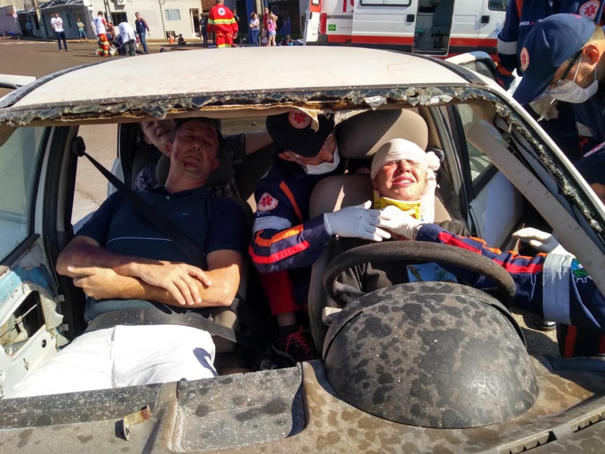 Na encenação os profissionais tiveram que socorrer cinco vítimas, algumas delas em estado grave, de um acidente envolvendo um carro e uma moto, onde o veículo havia se incendiado. O trabalho de resgate simulado contou com o apoio de duas ambulâncias do SAMU de Itaipulândia, unidades de suporte básico, e também de uma unidade de suporte avançado, que veio de Foz do Iguaçu, com um médico, enfermeiro e condutor.