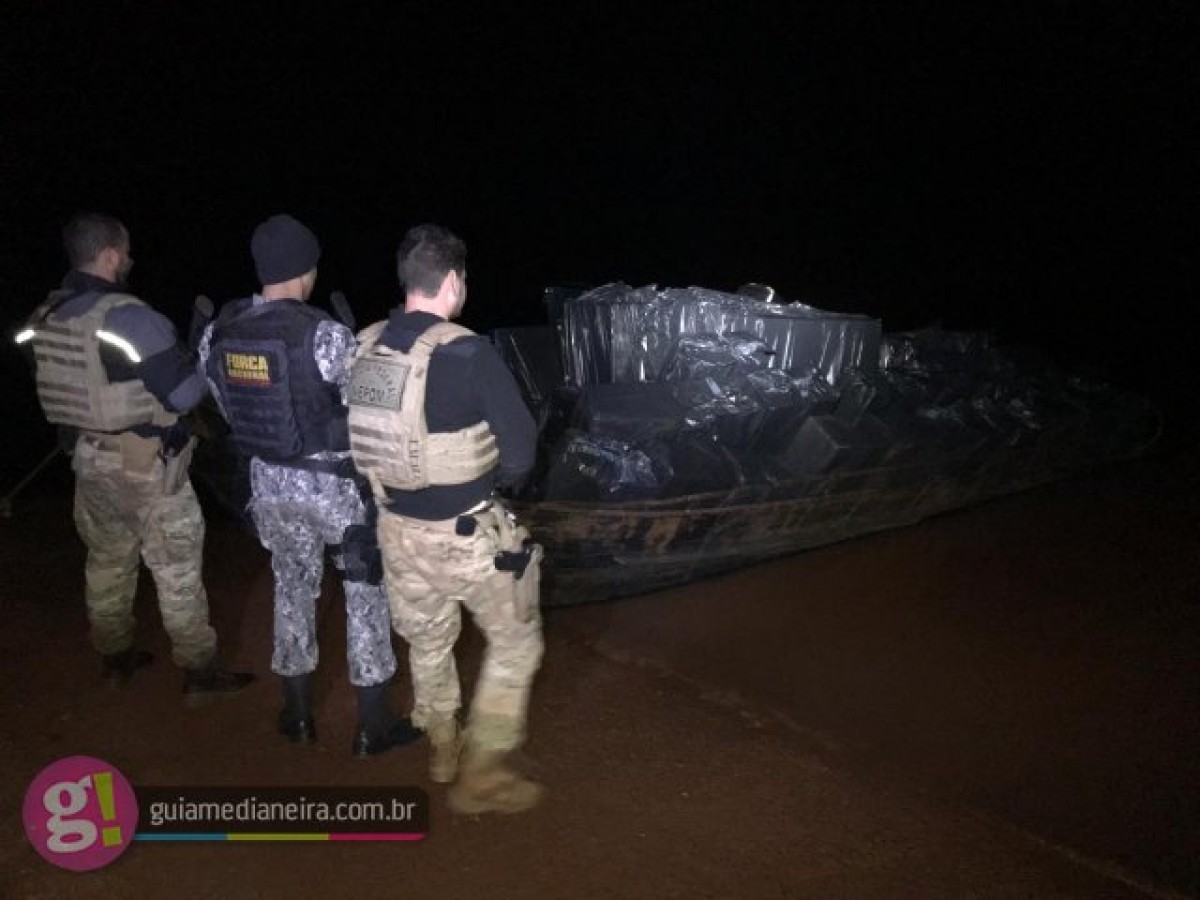 A apreensão ocorreu após confronto, pois os contrabandistas reagiram a tiros quando foram localizados pelos policiais na Base Náutica de Itaipulândia.